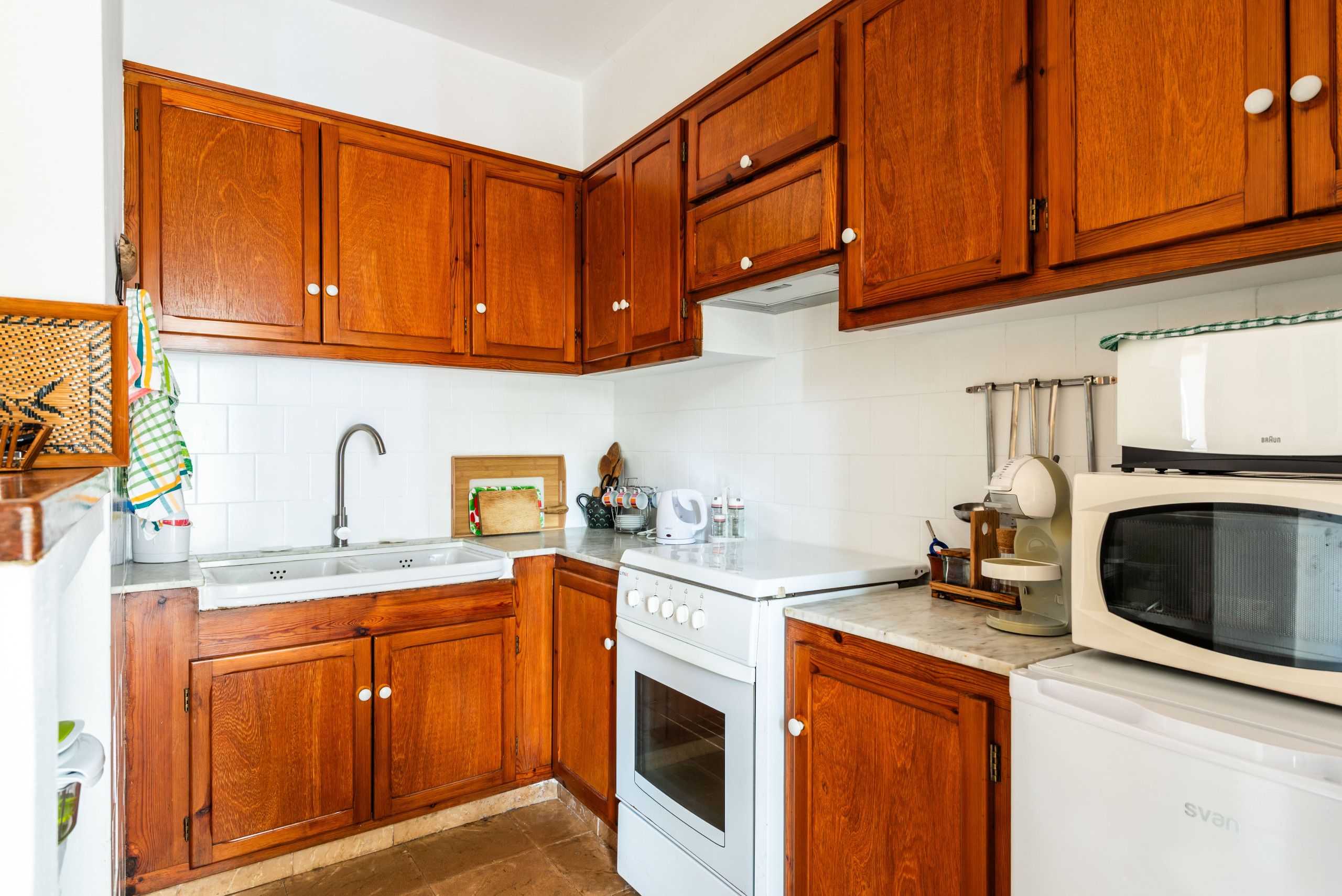 Casa situada en una zona tranquila de la localitat de Cala Blanca, és perfecta per a una parella amb un o dos nens. Té dos dormitoris dobles i un bany.